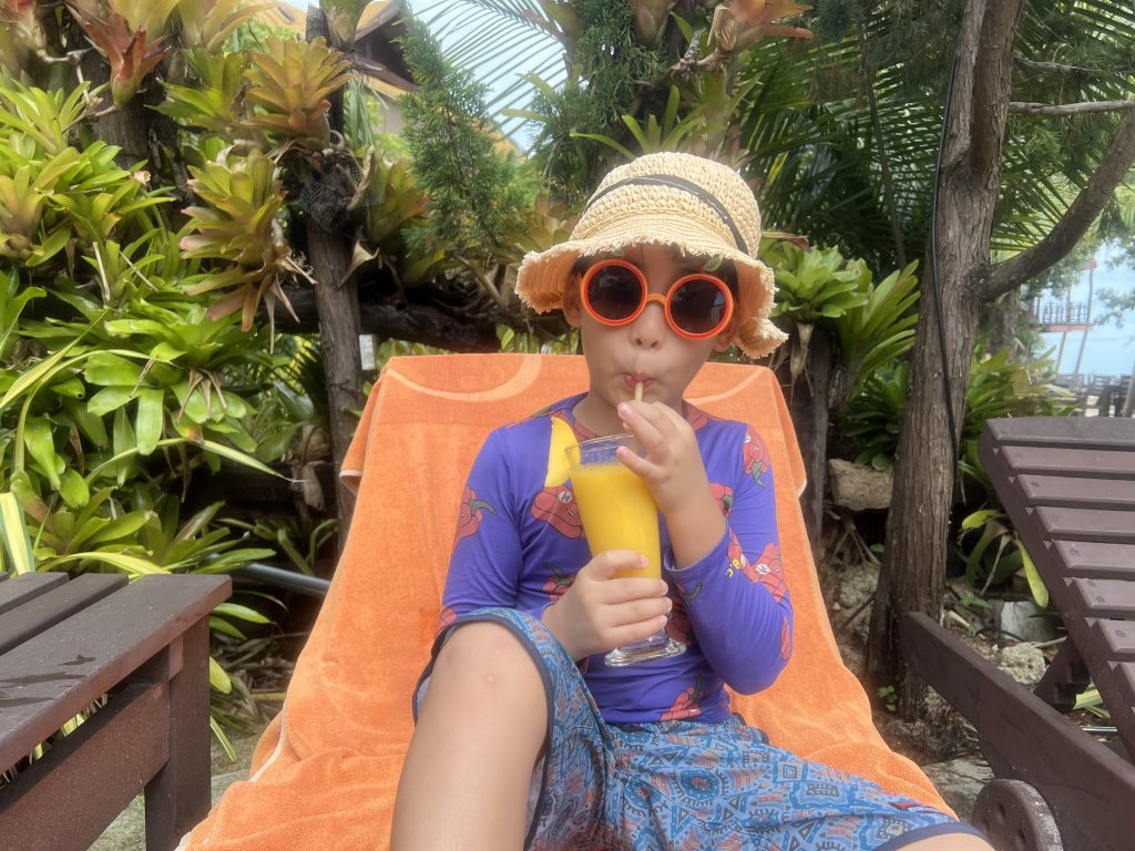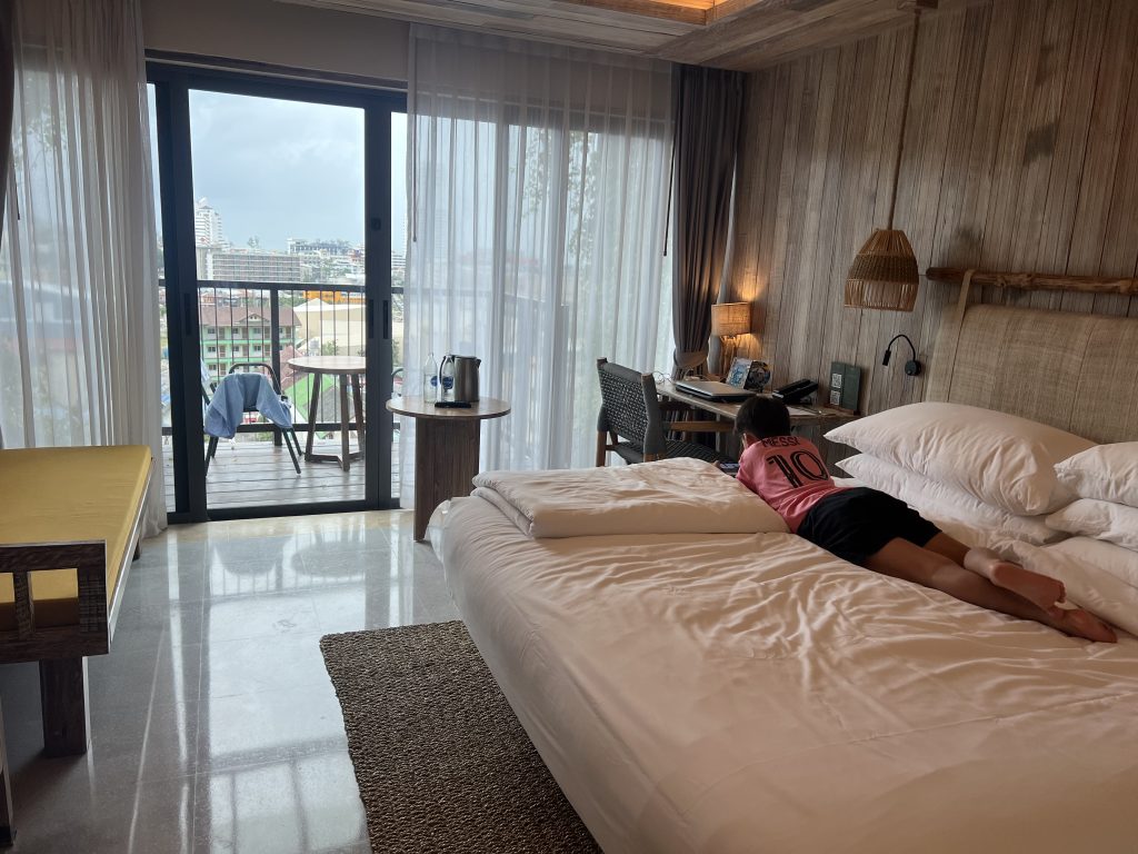 We next stayed at Phi Phi Resort for a night on Long Beach. A beautiful little cottage was our home there, that we needed to ride a van up and down to every time we wanted to get to the beach or pools. The water was a little rough in the ocean, but the pool they had was a classic, ranks in my top 5 personal favorites on the planet. The resort also had the meanest breakfast staff on the planet. When we left, we boarded another long boat to get back to the Pier with about 12 other guest and all our luggage. The boat sank deep down in the water when it was said and done. HK cut off circulation in my hand during the ride back to the pier, but we did not capsize. Dinso Resort was all about their incredible breakfast, their pool, the kid’s cafĂ© (PS5) and that burger I ate. Since we had 8 hours to kill on our last day we booked a resort room near the airport. Well we thought it was a resort, turns out their pool was out of commission and the room smelled like mold. The place looked like a perfect place for a drug deal. I haven’t had a good laugh like that in a long time. Our check-out came within minutes of our check-in. Back to Sugar Marina we went, thanks to Bolt.