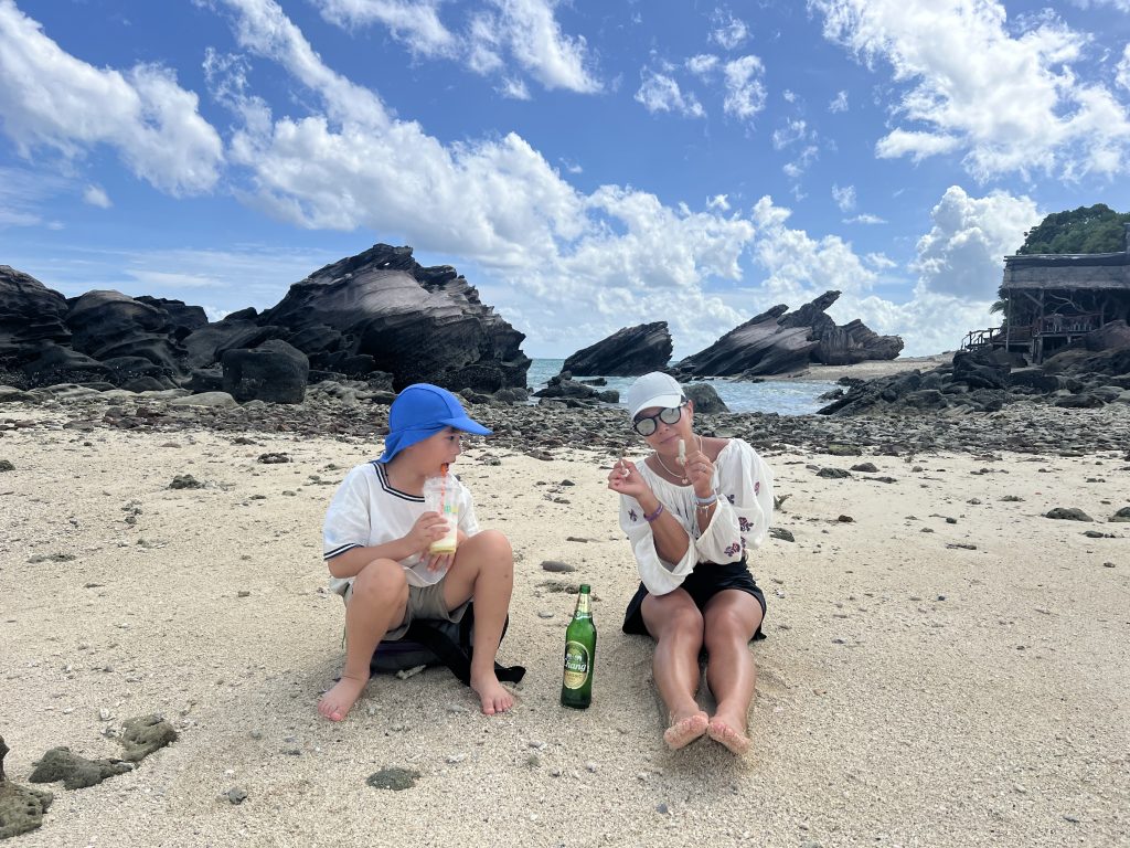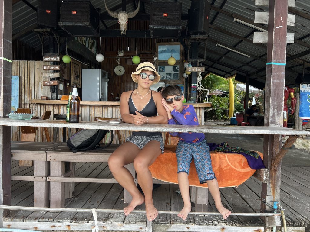 On the second day, we went snorkeling around Maya Bay (although that beach was closed and there was some trash in the water) we found two good snorkeling spots and Mason had no fear about the water or its depth. My snorkel did fall to the ocean’s floor and I was surprised how fast with fins I could get down there to grab it (12 meters deep?) and on my ascent quickly pondered if my descent was a bad idea (considering the bends) but turns out I survived with the help of a quick beer.